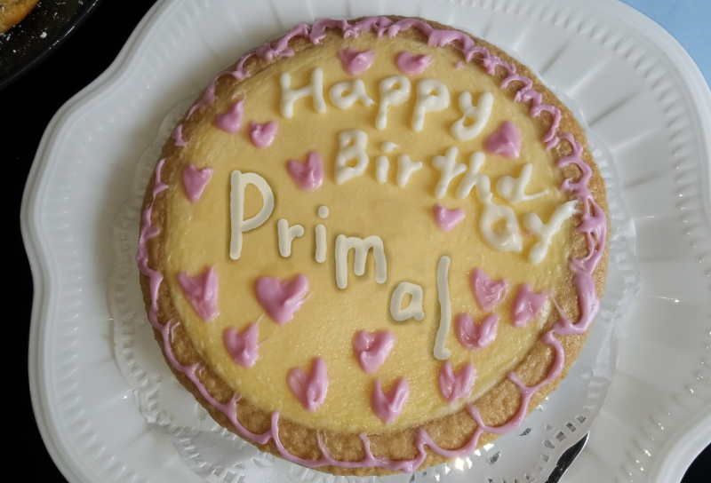 For my birthday, my girlfriend made me sirloin steak with all the trimmings, homemade Welshcakes and a hand-decorated cheesecake. She's also got me two birthday cards and a limited edition Japanese TF t-shirt.