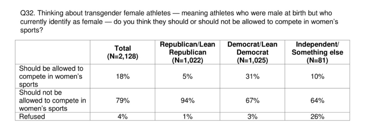 Most anti-trans stuff from the right is super unpopular, but this specific issue is different. Polls show that a majority of Americans, including a lot of Democrats, think trans women shouldn't compete in women's sports.