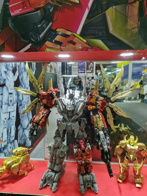And here they are in flying mode. I will say that Kingdom does have one advantage. It has the tail-fins on either side of the guns. That's actually a very nice touch for Kingdom that I really do appreciate. It is a real nice thing. But again, the wings look comparatively dull without any paint-apps to match the reissue's decals. And the flame paint job is still more interesting on the reissue. Plus the flush bits and curves all go in favor of the reissue.