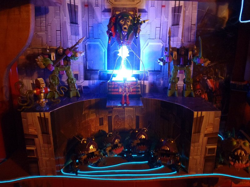 That is so awesome! Is that Ark interior Background the same one that BBTS sells? I have been thinking about getting one.Mail call brought some more E.L. wire for my display. It was supposed to be a 32' purple strand, but it looks more like white. Oh well. At least I was able to add some lighting to all the shelves. I put all the blue E.L. wire on the Pit of Judgement display to try to simulate the look of water. It looks much better with all the lights off. But, because my camera isn't the greatest, then all you can see is the E.L. wire and the LED light. And, the flash drowns out the lighting effects. So, I left the ceiling light on so you can actually see something.