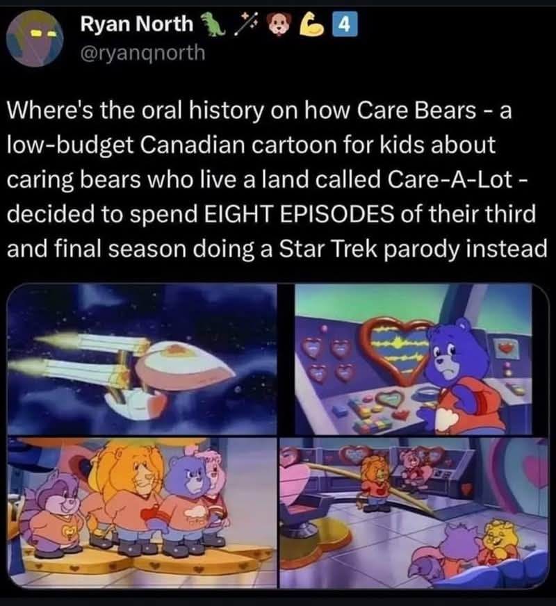 As a child of the 80's, of course I remember Care Bears, but I do not remember them going full on Star Trek. Especially not for what would these days be nearly a full season of a show.
